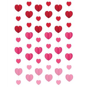 Hearts String Hanging Decorations, Red/Pink, 7-ft, 6-pk, for Valentine’s Day