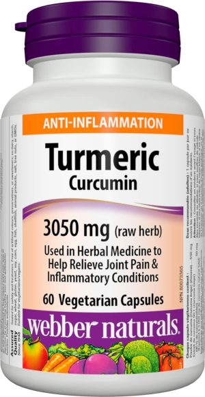 Webber Naturals Turmeric Curcumin, 3,050 mg of Raw Herb, 60 Capsules, Antioxidant Support, Vegan