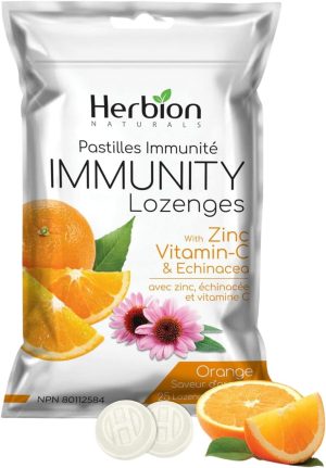Herbion Naturals Immunity Lozenges with Zinc, Vitamin-C & Echinacea, Source of Antioxidants Helps Maintain & Support Immune System, Promote Good Health for Adults & Kids 6+, 25 CT, Orange Flavour.
