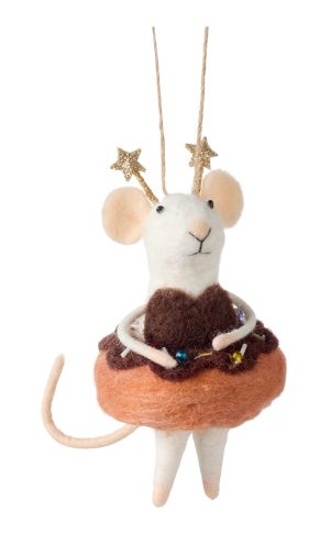 CANVAS Merry Mingle Collection “Sprinkles” Felt Mouse with Donut Dress Christmas Ornament, 5.3-in