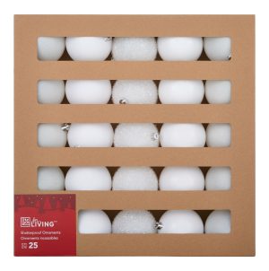 For Living Shatterproof Decoration Ball Christmas Ornament Set in Corrugate Box, White, 80-mm, 25-pc