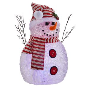 For Living Acrylic Battery Operated Light-Up Christmas Decoration Snow Man, 16-in