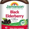 Jamieson Black Elderberry 4,500 mg Vegetarian Capsules, Provides Relief from Cold and Flu, and Relieves Symptoms Like Fever, Cough, and Sore Throat. Non-GMO, Gluten-Free, 45 Count, Proudly Canadian