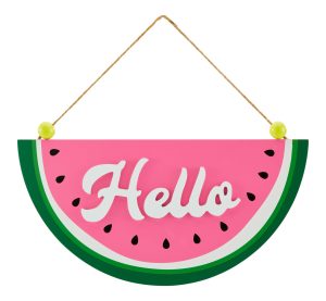 For Living Watermelon Hello Sign, Double-Sided English & French, Wood, 39.4 cm