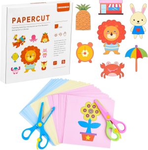 ASTARON 2 Kids Safety Scissors with 100 Pcs Paper Cutting for Paper Craft Supplies, Kids Preschool Training Scissors, Art Craft Plastic Scissors for School Supplies and Scrapbooking Supplies