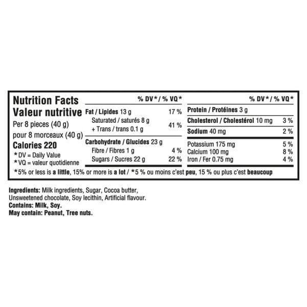 - BELOVED BRAND: CADBURY DAIRY MILK is loved by Canadians, delivering quality and joy in every bite. Savour the simple pleasure in every piece. Proudly Made in Canada with domestic and imported ingredients.