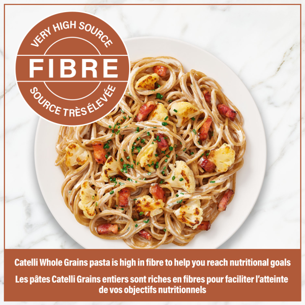 Whole Wheat, Whole Lot of BenefitsCanadian wheat is recognized as being among the best in the world. Catelli® whole grain pasta is an excellent source of fibre to keep you fueled throughout the day and also tastes great. Try it with your favourite sauce for a delicious and nutritious meal.