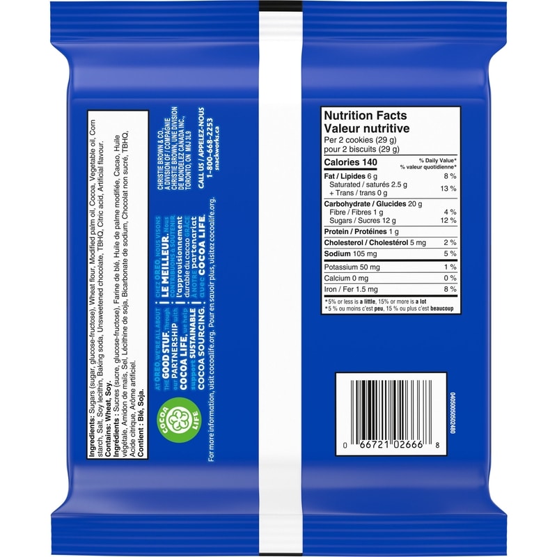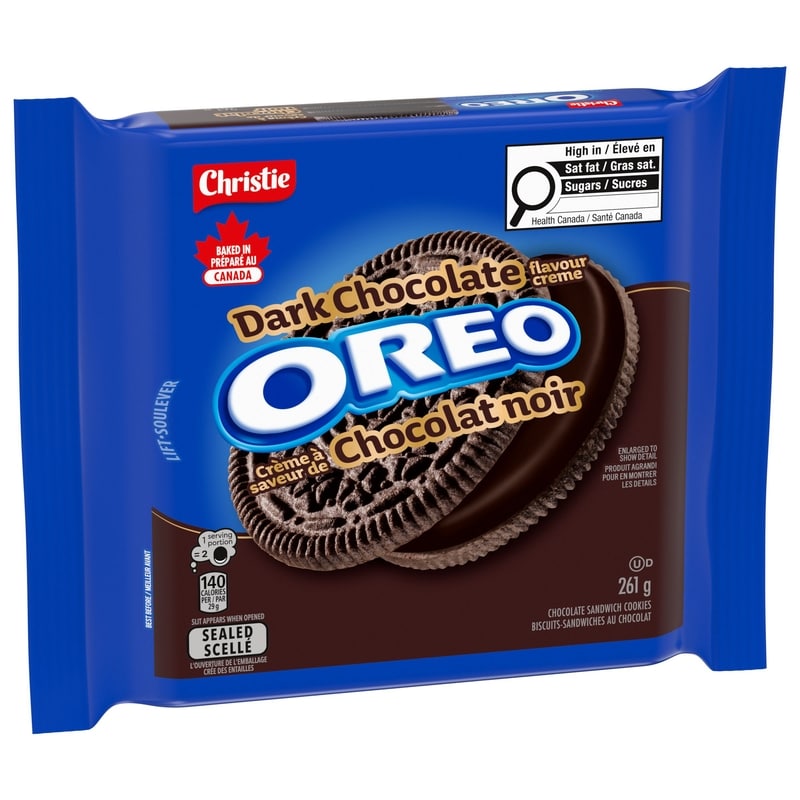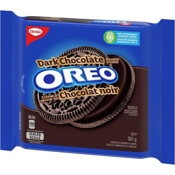 - This package contains 1 resealable 261g pack of OREO Dark Chocolate Flavoured Creme Chocolate Sandwich Cookies.