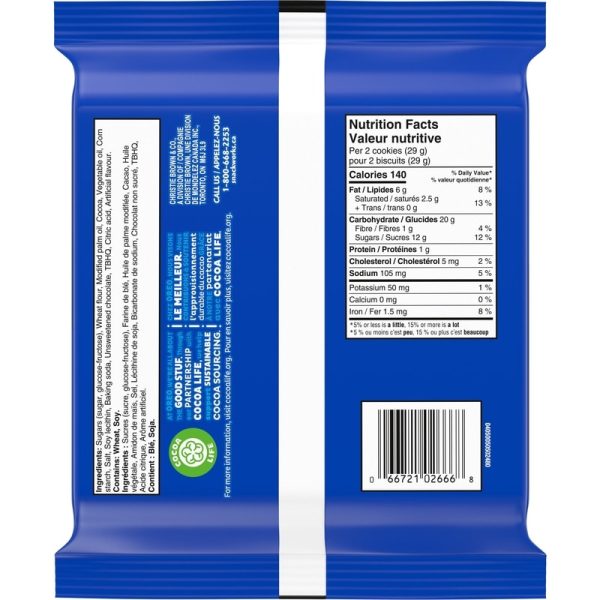 - Each serving of cookies is only 140 calories and Kosher, made with real cocoa, and has zero trans fats. Baked in Canada.