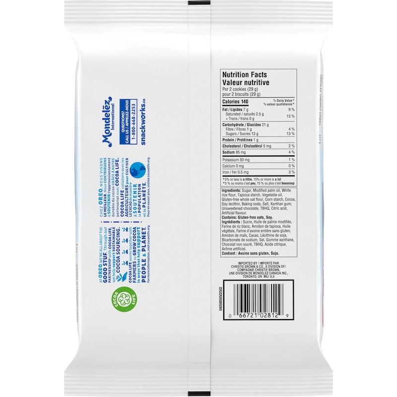 Milk’s Favorite Cookie OREO fans will celebrate this delightful, certified gluten free treat – now available in DOUBLE STUF! These gluten free chocolate wafer cookies are made with real cocoa and a blend of gluten free flour! Make any moment sweeter with gluten free OREO cookies. This package contains 1 pack of OREO Gluten Free Chocolate Sandwich Cookies.