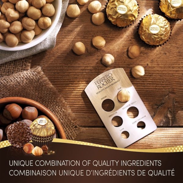 - Elevate and enjoy your precious moments with FERRERO ROCHER® fine hazelnut chocolate. Each praline features a crisp wafer shell, enveloped in fine milk chocolate and chopped hazelnuts, revealing a luscious, creamy chocolate filling that surrounds a whole hazelnut at its heart. Each FERRERO ROCHER® is meticulously wrapped in golden foil and is presented in an elegant, gift worthy, box. As you unwrap the iconic golden foil, anticipation builds, and as you take that first bite, you enter a moment of pure bliss. A timeless classic, loved all over the world, created with Ferrero® expertise.