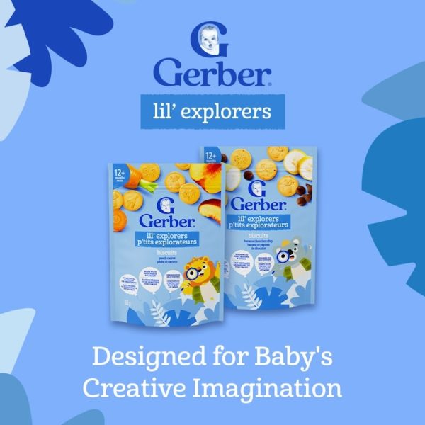 Let’s snack and play with GERBER Lil’ Explorers! Introduce your little one to a world of fun and flavour with GERBER Lil’ Explorers Banana Chocolate Chip biscuits. Specially crafted for babies and toddlers 12 months and up, these delightful snacks feature playful animal shapes designed to spark your baby’s imagination while satisfying their growing taste buds with a yummy banana chocolate flavour.Made with real banana and cocoa and absolutely no artificial colours, flavours, or sweeteners, GERBER Lil’ Explorers cookies offer a wholesome snacking option you can feel good about. Plus, their easy-to-grasp design encourages independent self-feeding — a perfect way for your little adventurer to build confidence during snack time.Whether you’re at home or on the move, these biscuits are perfect for on-the-go snacking. Just toss a pack in your bag, and you’re ready for any outing!Important: This product should only be fed to seated, supervised children who are accustomed to solid foods.Let your child snack, play, and explore — one tasty bite at a time with GERBER Lil’ Explorers Banana Chocolate Chip biscuits!