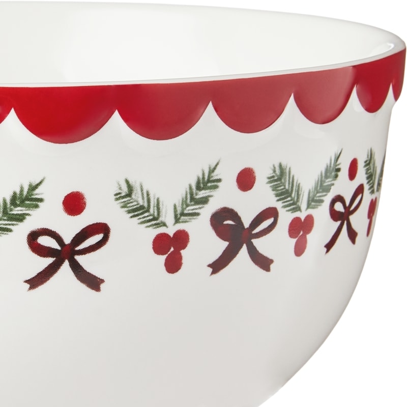 Add our Bow and Holly Bowl to your collection for a festive aesthetic. It’s microwave and dishwasher safe for convenient everyday use. Part of our Holiday Cheer Collection, it complements other tableware in this collection.