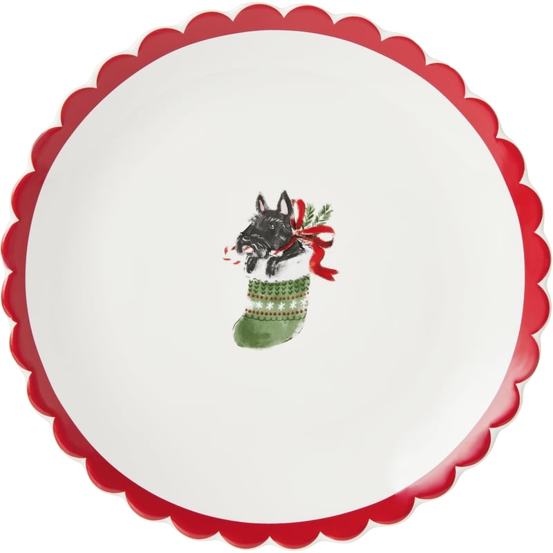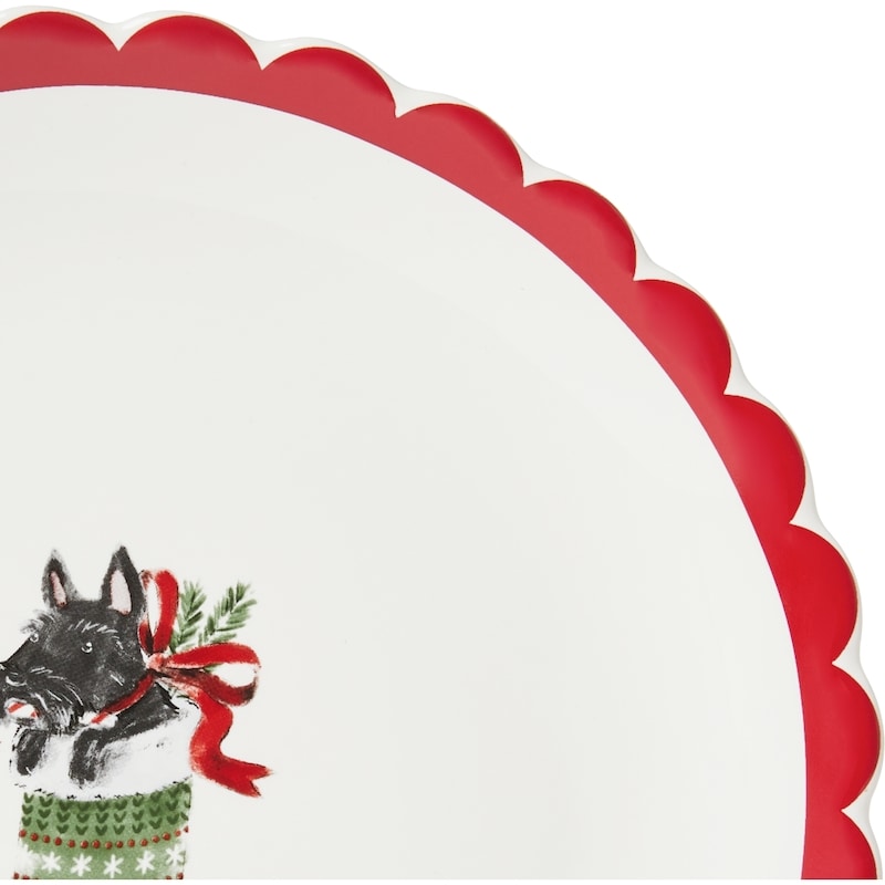 Add our Stocking Scottie Side Plate to your collection for a festive aesthetic. It’s microwave and dishwasher safe for convenient everyday use. Part of our Holiday Cheer Collection, it complements other tableware in this collection.