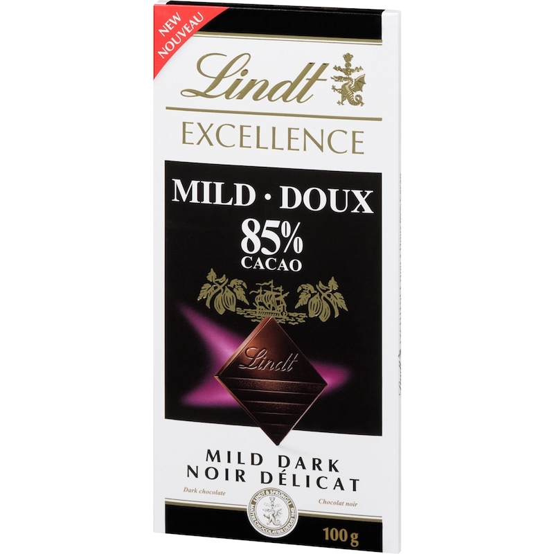 Our Lindt EXCELLENCE 85% Cacao Mild dark chocolate bar has all the appeal of traditional dark chocolate but with a slightly less intense cacao-forward taste. A careful selection of the finest cocoa beans, specially selected for this bar because of their mild flavour, paired with the passion and care of Lindt Maître Chocolatiers, ensures a smooth and even texture that slowly melts in the mouth. This bar offers a softer and milder experience with less acidity and bitterness than traditional dark chocolate. Those who prefer milk chocolate may even be converted!
