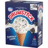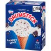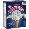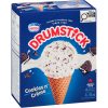 Find DRUMSTICK Cookies n’ Crème cones in your grocery store’s Ice Cream & Frozen Dessert aisle and experience a delicious vanilla frozen dessert with scrumptious chocolate cookie pieces throughout, coated in a crunchy white chocolatey coating blended with chocolate cookie pieces. But there’s more! Inside, you’ll discover a delicious chocolatey nugget at the bottom of the cone.
