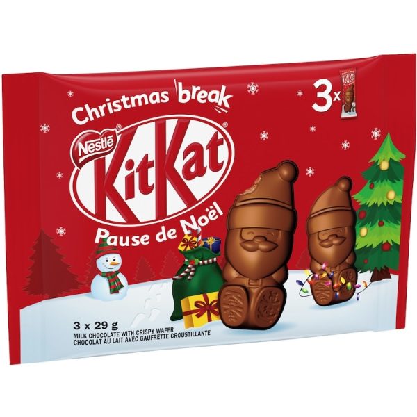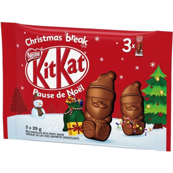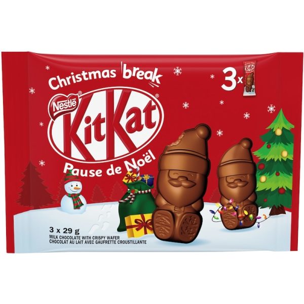Take a break this holiday season with the festive NESTLÉ KITKAT Holiday Milk Chocolate Santas (3 x 29 g). A pack of 3 adorable chocolate Santas with the undeniable crisp and crunch of KITKAT wafer. Each treat is perfect for a small festive gift, creating your own decorations, or ensuring every stocking is filled with a chocolate treat. The smooth, delicious milk chocolate and irresistible crunch is sure to make any chocolate-lover merry. HAVE A BREAK, HAVE A KITKAT.