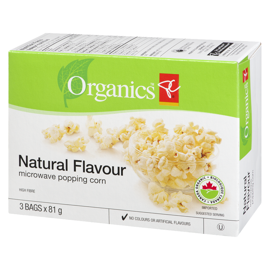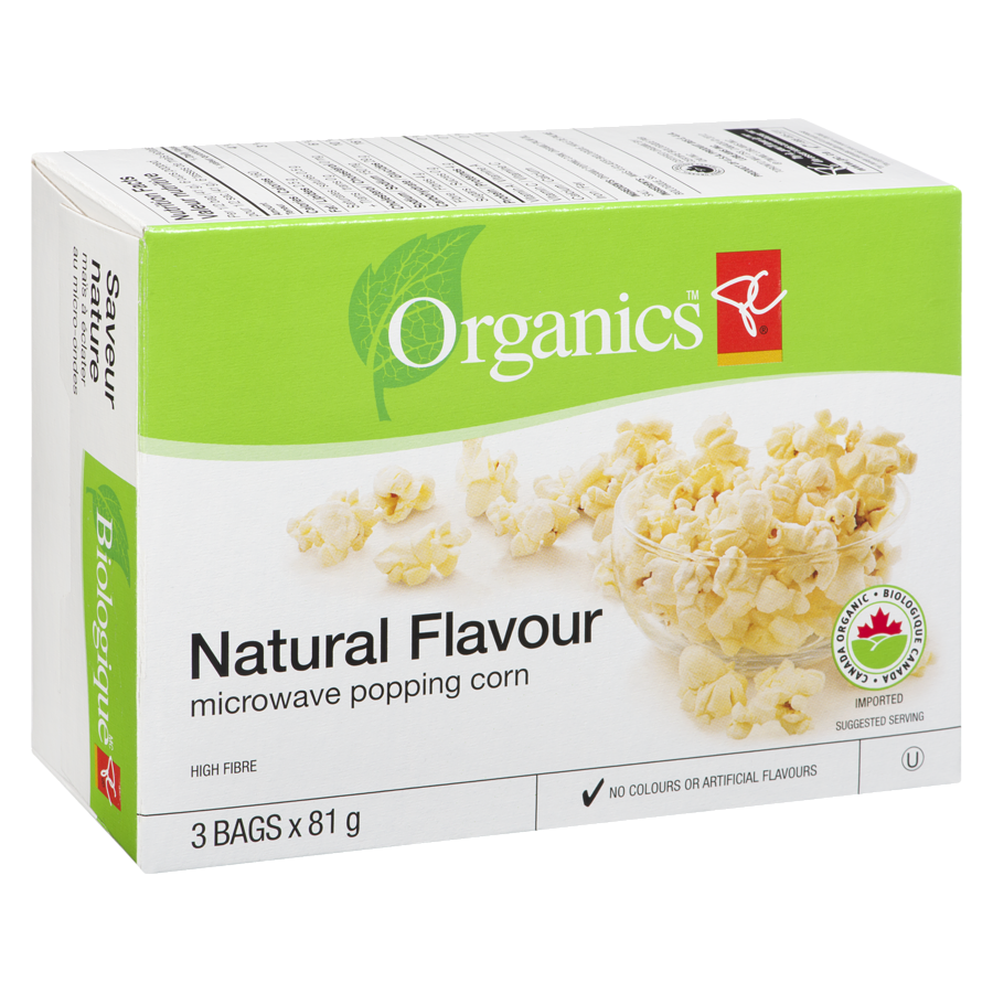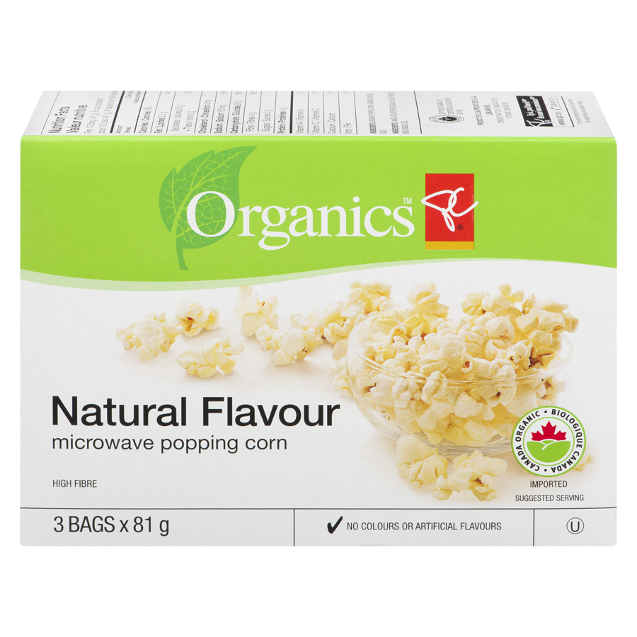 Natural flavour popping corn. 3 pop-and-serve bags. Nothing to add… pops in minutes.