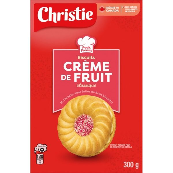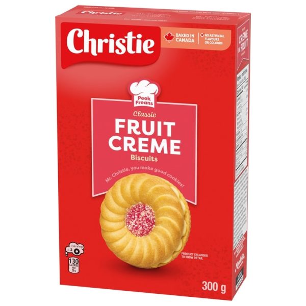 - This package contains one 300 g carton of Peek Freans Fruit Creme Biscuits