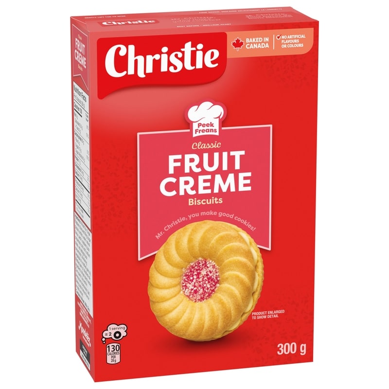 - This package contains one 300 g carton of Peek Freans Fruit Creme Biscuits