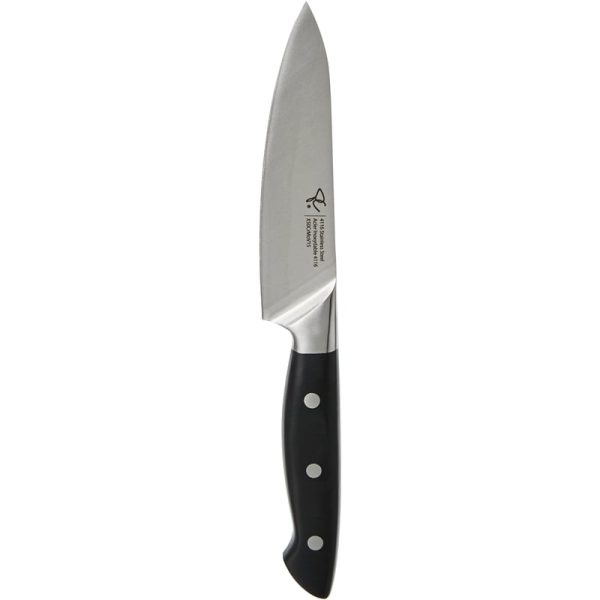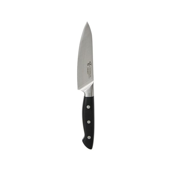Narrower than a chef’s knife and longer than a paring knife, our Precision Pro Utility Knife is a multi-tasker that’s ideal for slicing and chopping. Made of German steel, it features a triple-riveted handle for durability and control. The bolstered design ensures a comfortable grip for precise handling. The ultra-sharp blade offers effortless cutting.