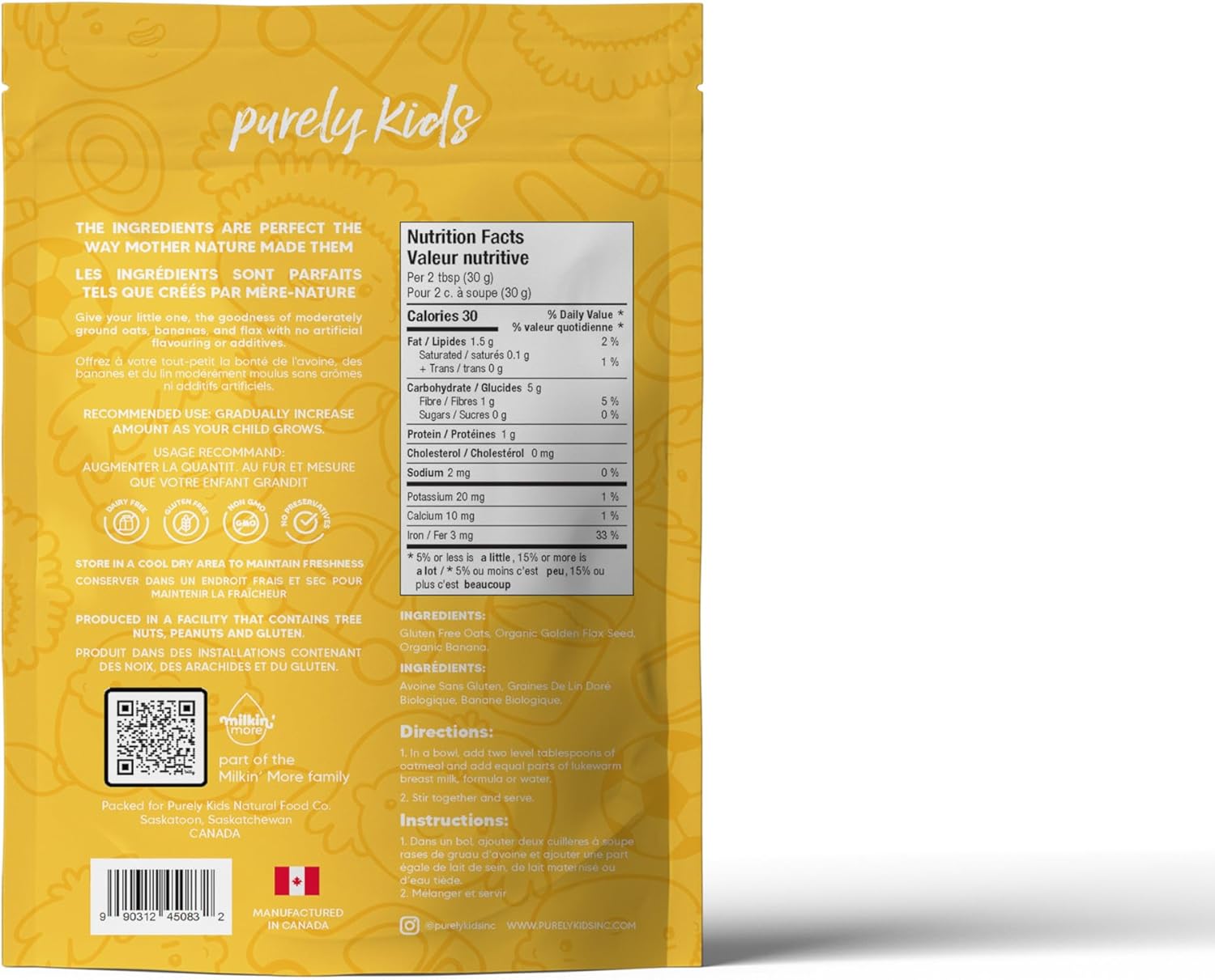 2-Pack Purely Kids Organic Banana Toddler Oatmeal, All Natural, Dairy Free, Gluten Free, NON GMO, No Refined Sugar