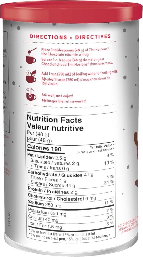 2-Pack Tim Hortons Candy Cane Hot Chocolate Beverage Mix, Limited Time Offer, 450g Can