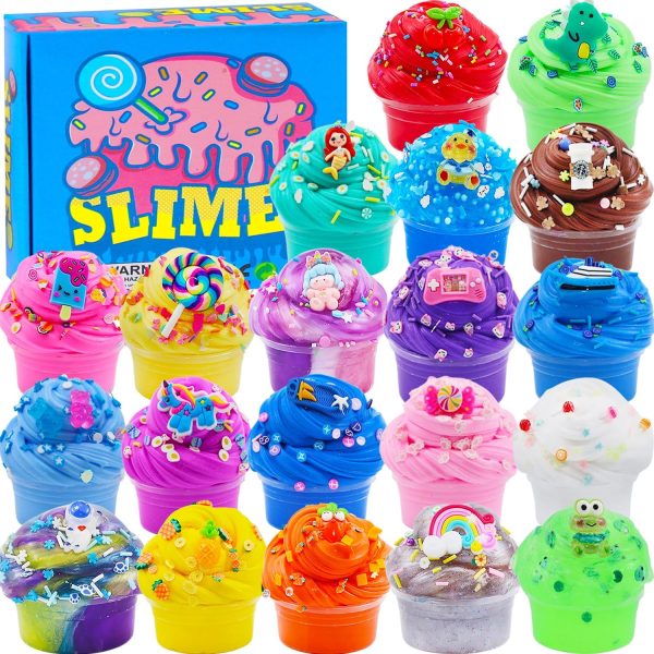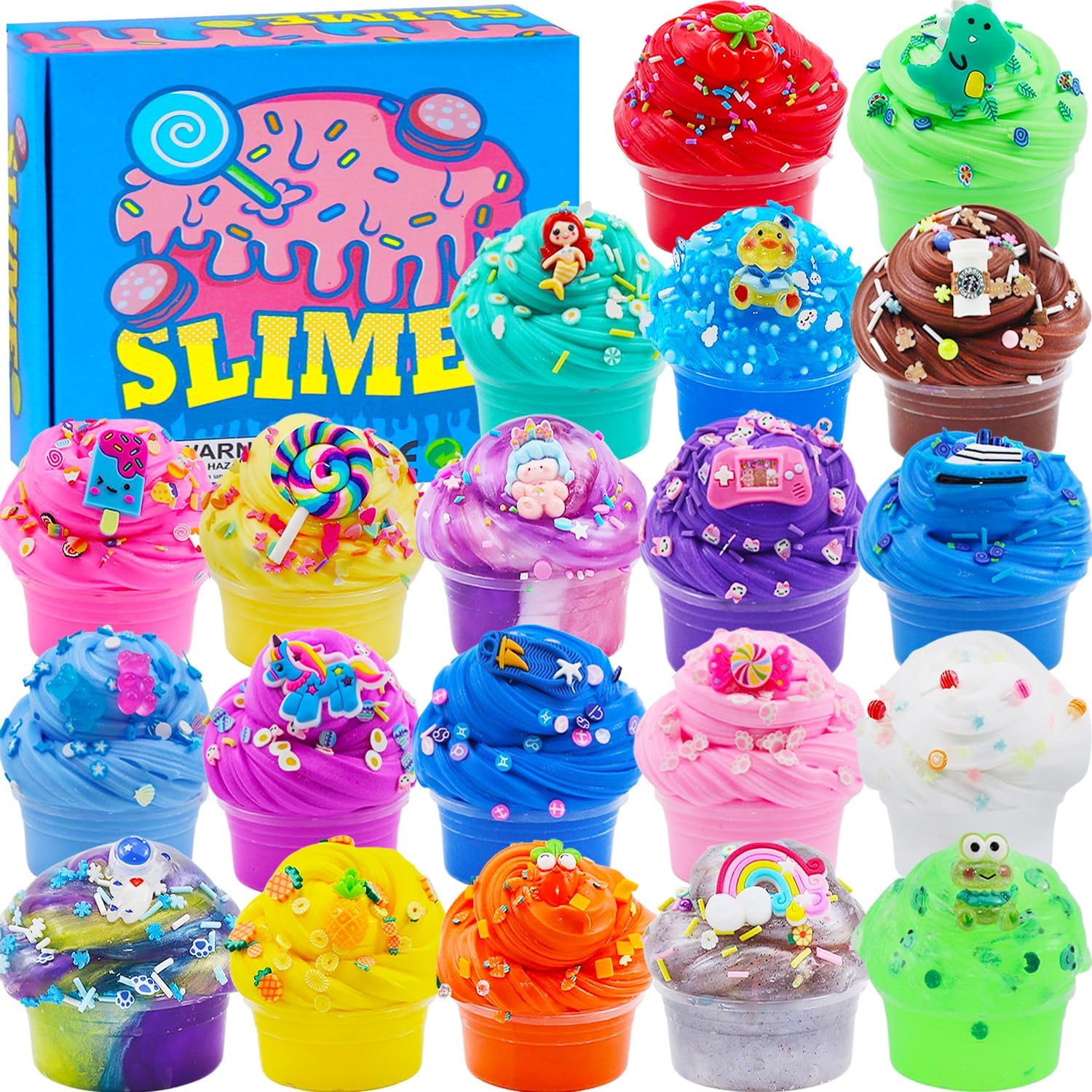 - 【NEW pattern and cute fruit scents】 The cute 20 pack butter slime kit covers various themes and textures of slime. You can find slimes of different textures and colors in your cute slime box. Each container holds 50ml slime.The food grade fruits scents keep you far away from headaches.