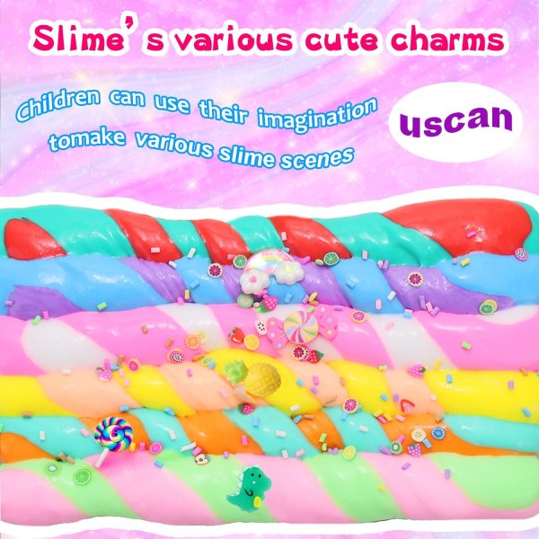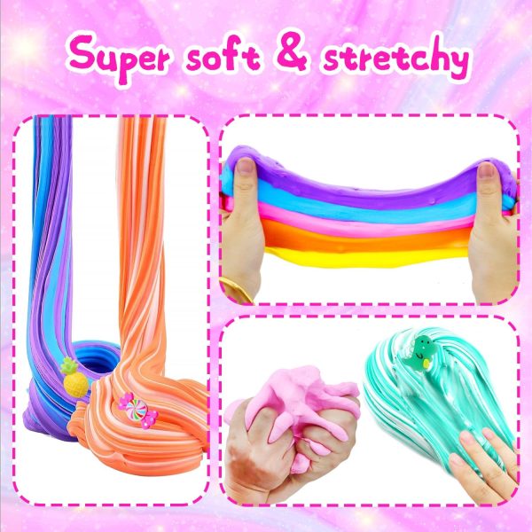 - 【Stretchy &Non sticky fluffy slime for kids】The Cloud slime pack is super soft, stretchy and non sticky. Great quality for kids and adults. You can press, squeeze, spread,smash,stretch, knead the butter slime or create arts with the slime charms.The slime kits are perfect for slime supplies for kids and adults,kids party favours,loot bag fillers for kids.Tips:Put the slime back in container when you do not play. Do not expose them in air for long time.For extremely cold weather in winter, you can warm them up for some while before playing.
