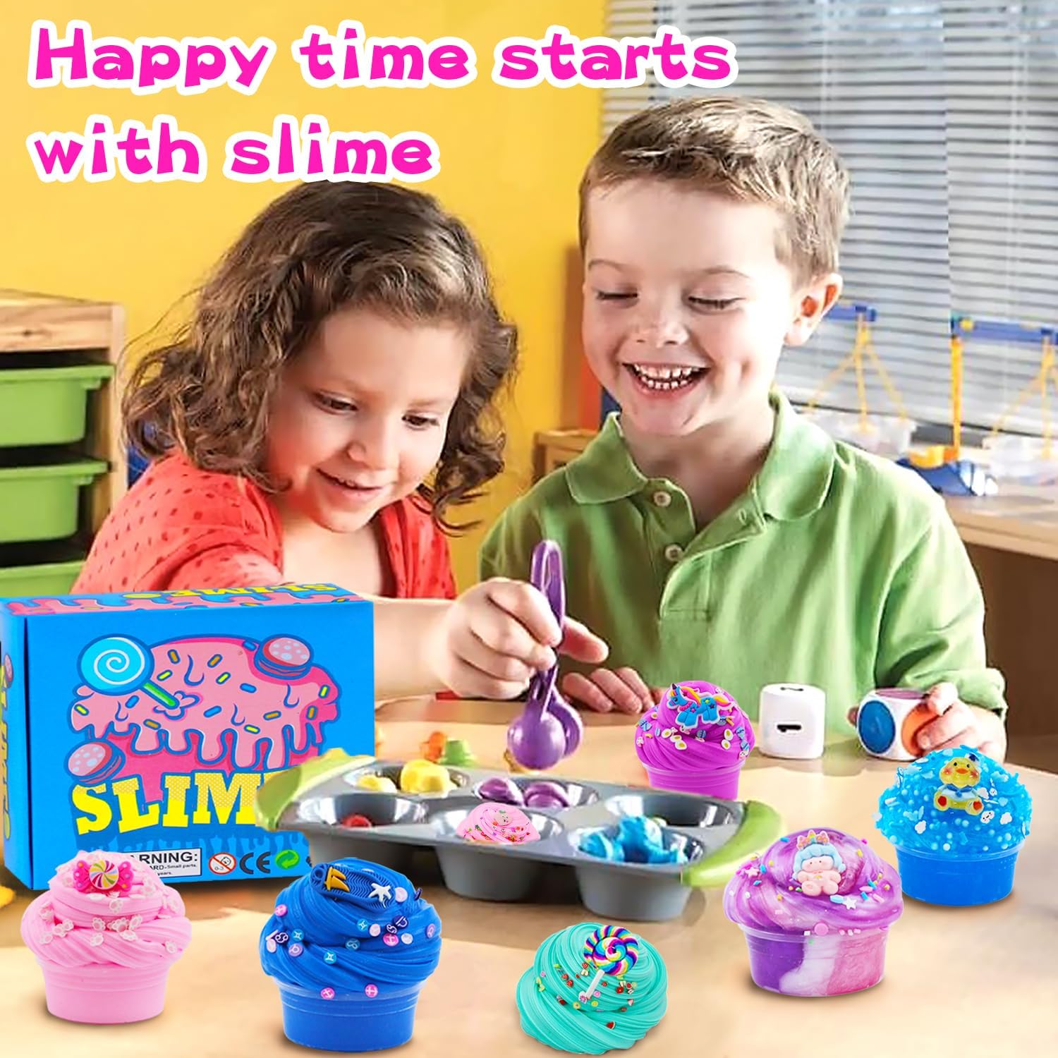 The butter slime kit for girls boys is perfect birthday gifts for 3 4 5 6 7 8 9 10+ year old kids. Adults can also have the fluffy slime toys for stress relieving. Great educational toys and birthday gifts for boys and girls, class gifts for students,Easter baskets stuffers,Christmas gifts,Christmas stocking stuffers for kids, loot bag fillers for kids, party favors for kids etc.Kids will love it and busy playing with the slime cheap for whole day.