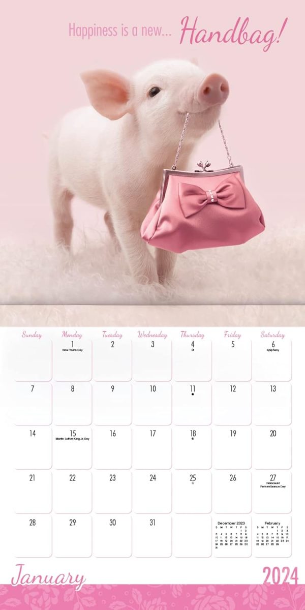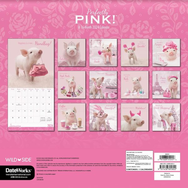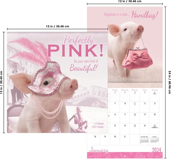- This 2024 Perfectly Pink Wall Calendar features monthly pages for January to December 2024, as well as the last 4 months of 2023