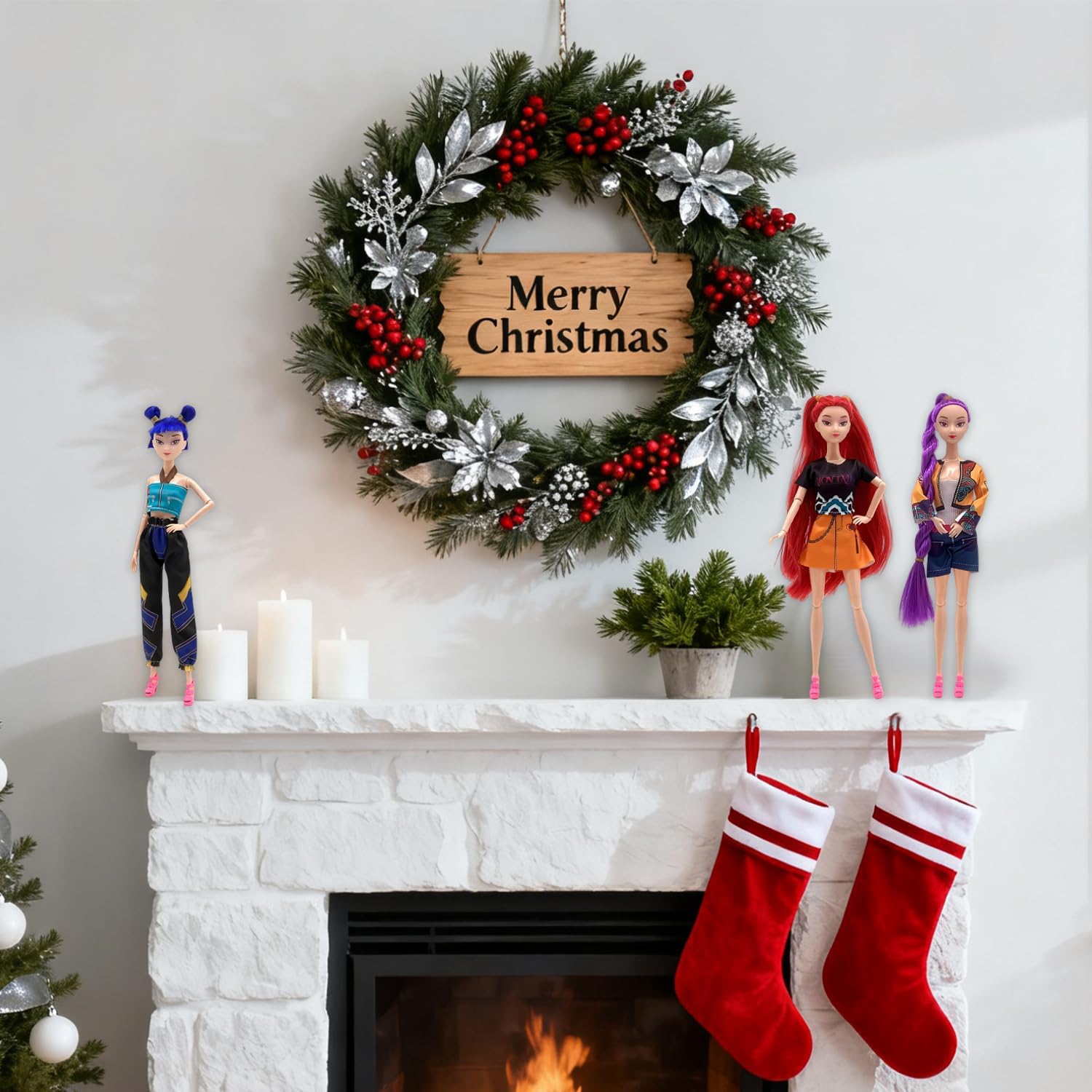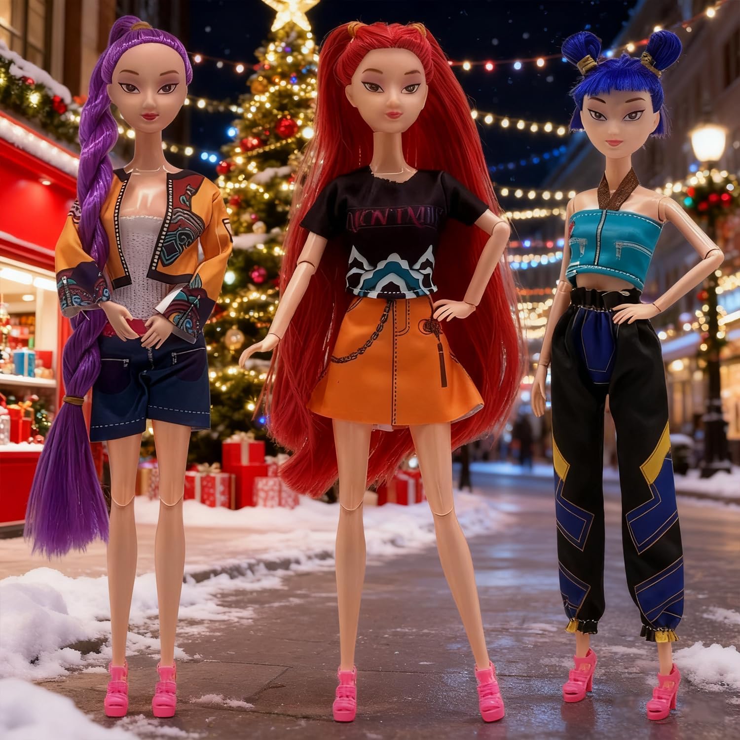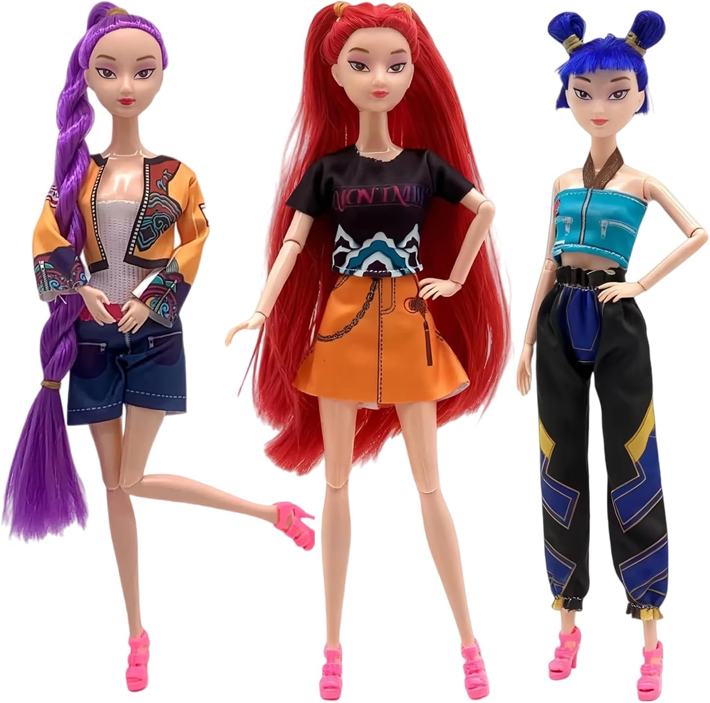 2025 New Kpop Demon Doll Figurine Set with Trendy Outfits, for Kids Girls Christmas Decorations Gifts (Multicolor-3PCS)