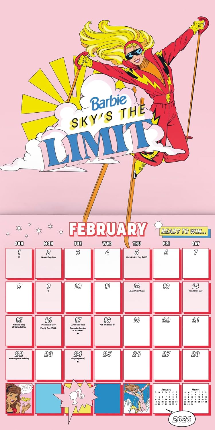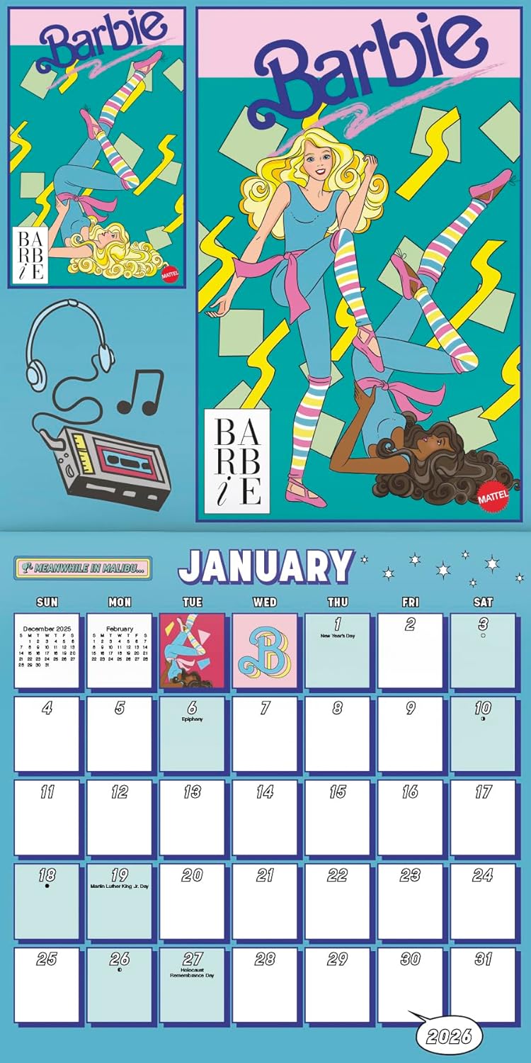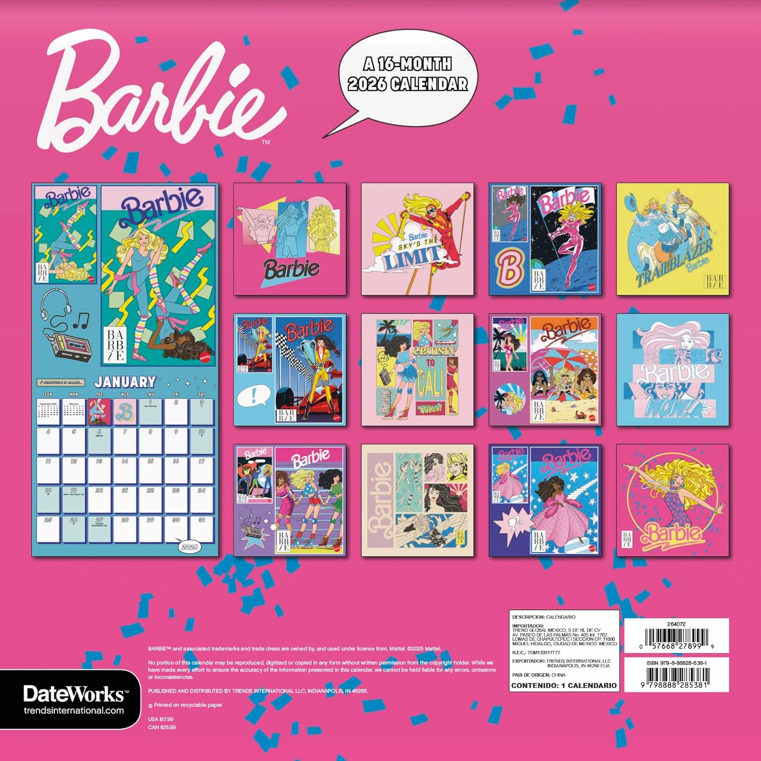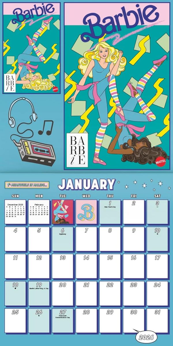 - This 2026 Barbie Comic Wall Calendar features monthly pages for January to December 2026, as well as the last 4 months of 2025