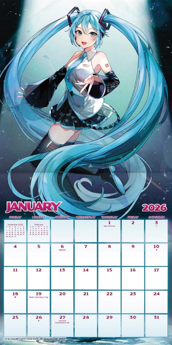 - This 2026 Hatsune Miku Wall Calendar features monthly pages for January to December 2026, as well as the last 4 months of 2025
