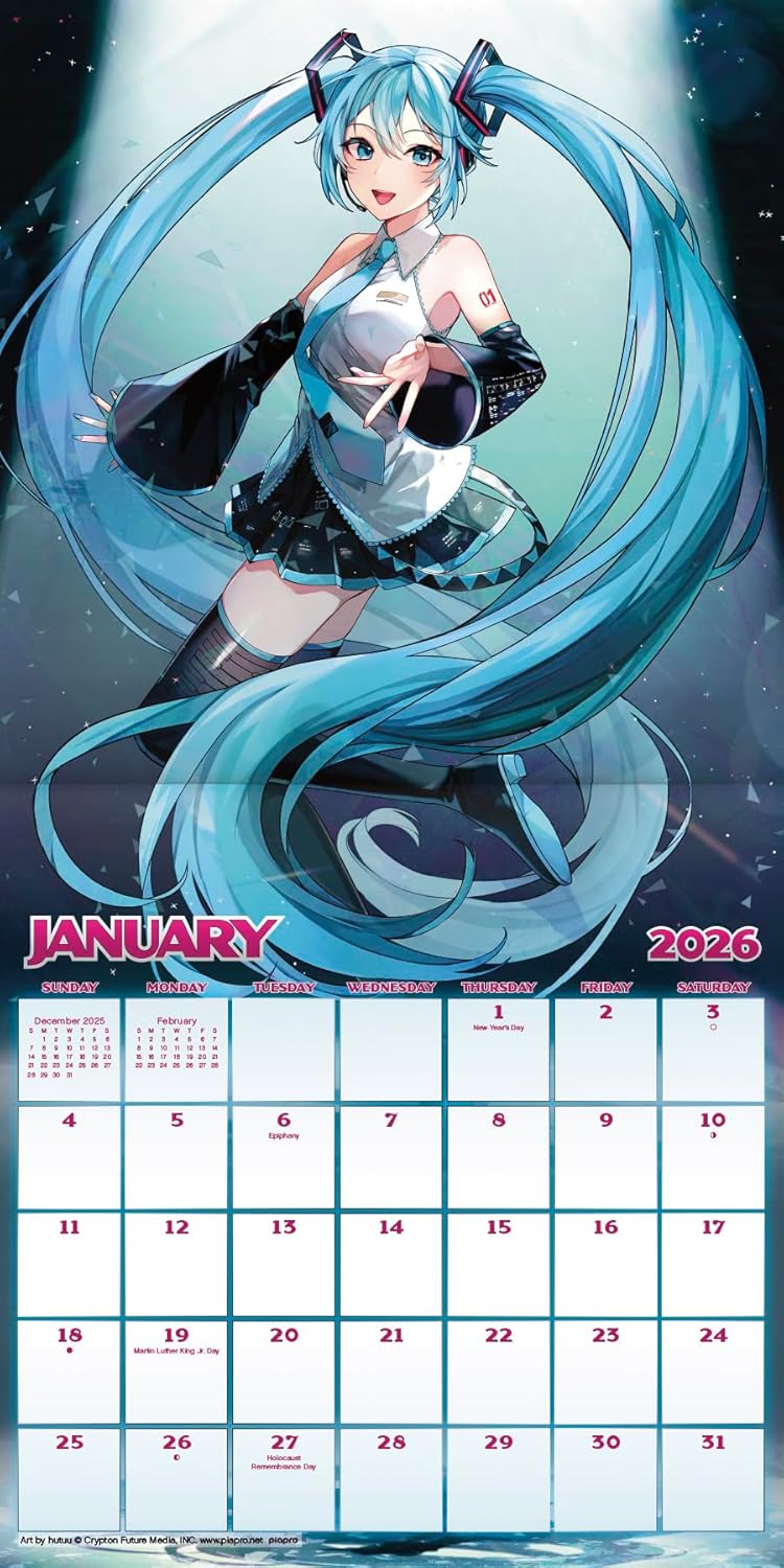 - This 2026 Hatsune Miku Wall Calendar features monthly pages for January to December 2026, as well as the last 4 months of 2025