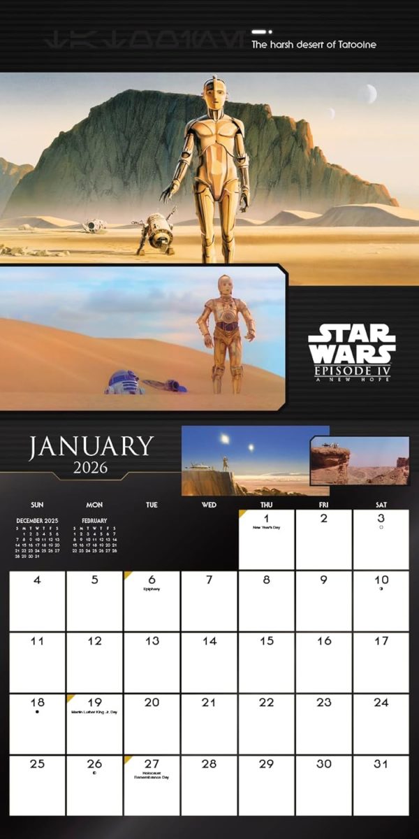 - This 2026 Star Wars Collector's Edition Calendar features monthly pages for January to December 2026, as well as the last 4 months of 2025