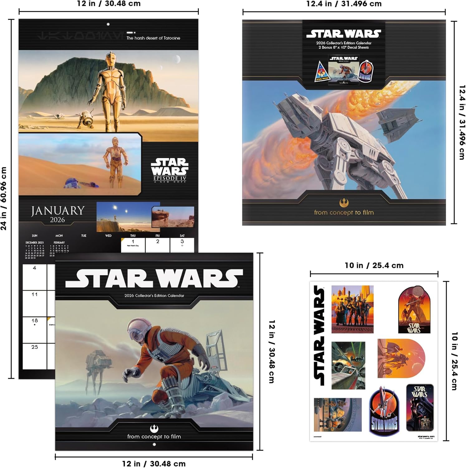 - This 2026 Star Wars Collector's Edition Calendar features monthly pages for January to December 2026, as well as the last 4 months of 2025