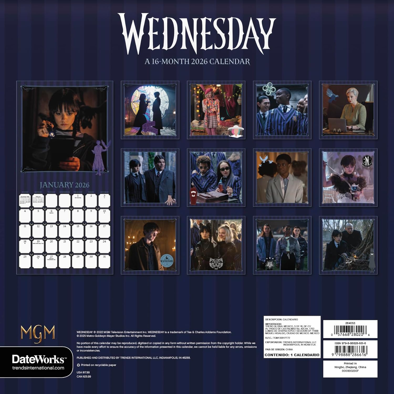 - This 2026 Wednesday Wall Calendar features monthly pages for January to December 2026, as well as the last 4 months of 2025