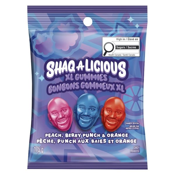 “Shaquille O’Neal is making a sweet debut with SHAQ-A-LICIOUS XL Gummies candy! Featuring Shaquille’s smiling face on each gummy, they are available in original fruit flavours (peach, orange and berry punch) and are larger than the average size gummy candy, packing extra fun in every bite to enjoy during your next adventure. With a bag of SHAQ-A-LICIOUS XL Gummies candy ready for action, you’ll never find yourself without a delicious snack.