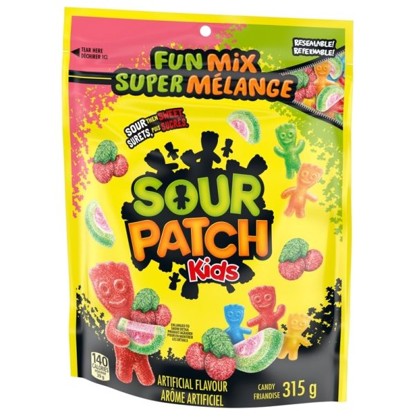 - This SOUR PATCH KIDS product is a 315 g bag of your favourite sour-then-sweet candy.