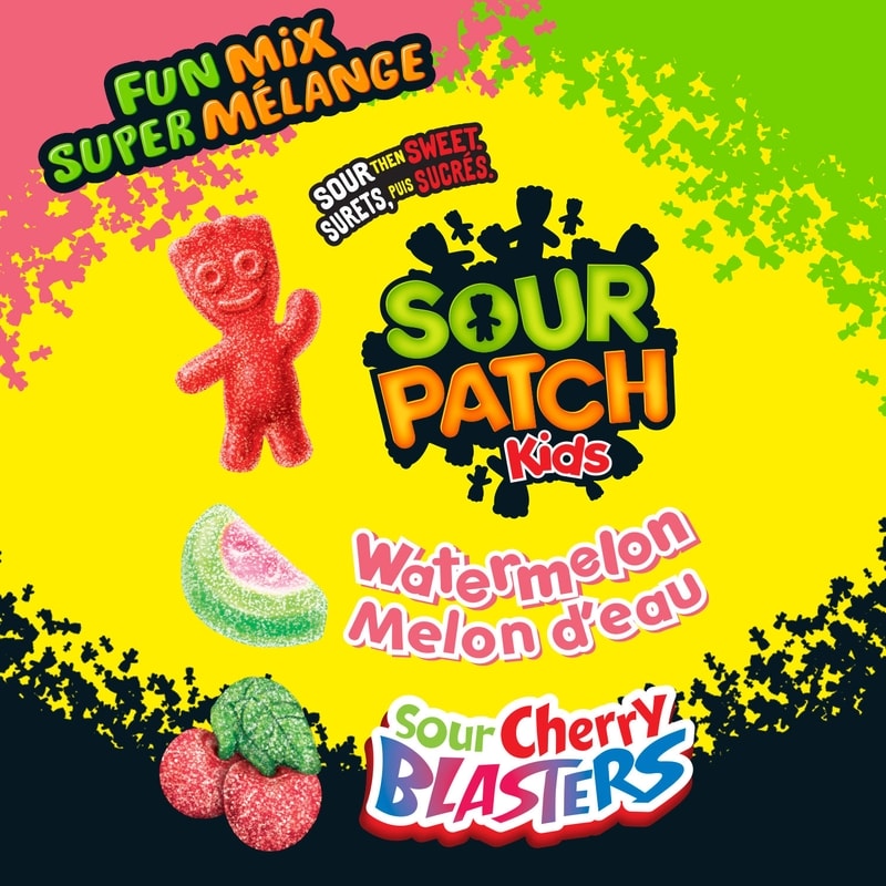 - Get ready for not one, not two, but THREE all-time favourite SOUR PATCH KID candies, all in one bag. This bag is a mix of SOUR PATCH KIDS, Watermelon, and SOUR CHERRY BLASTERS.