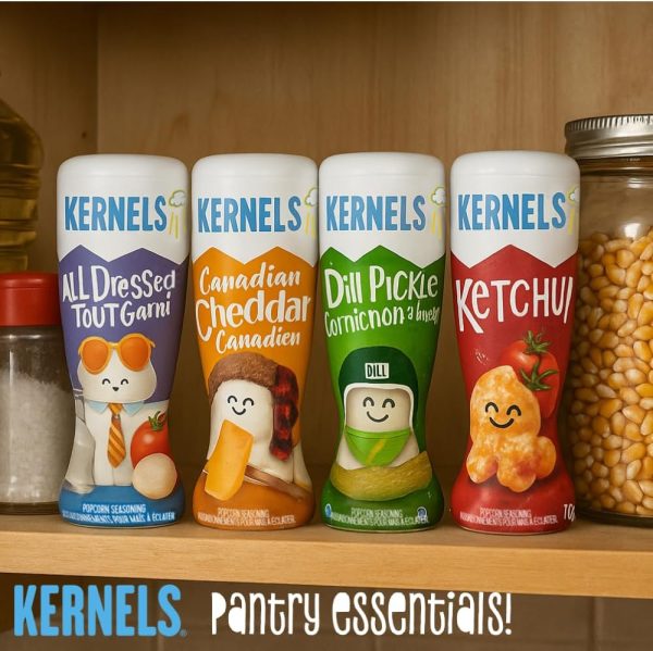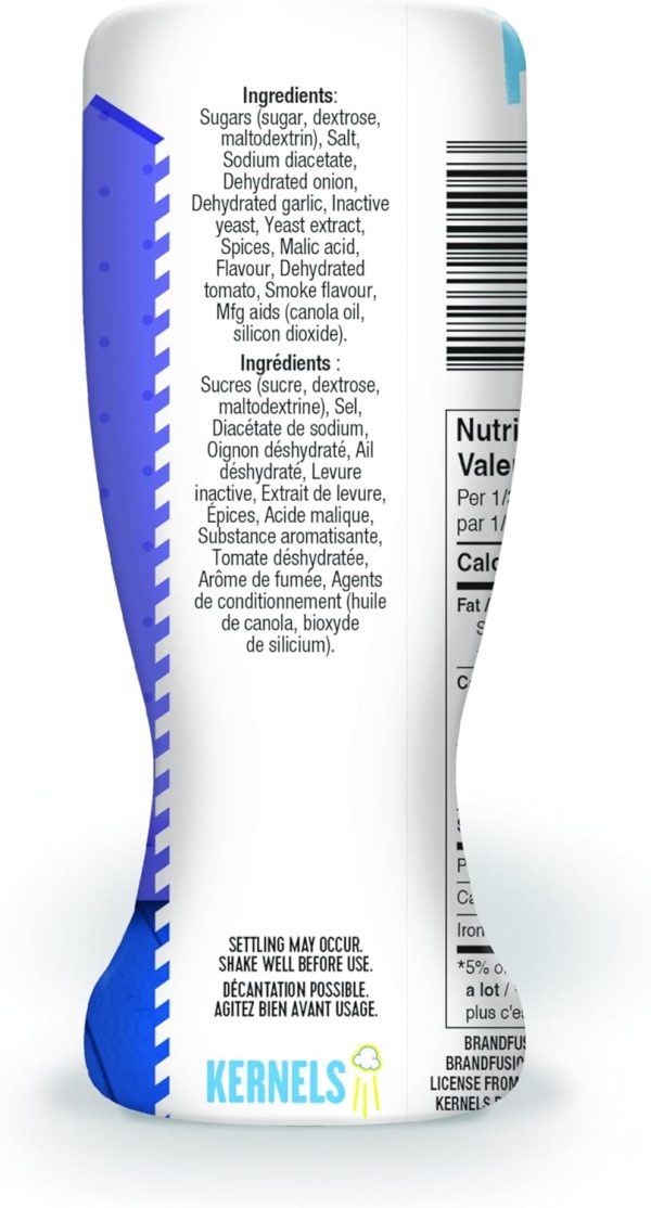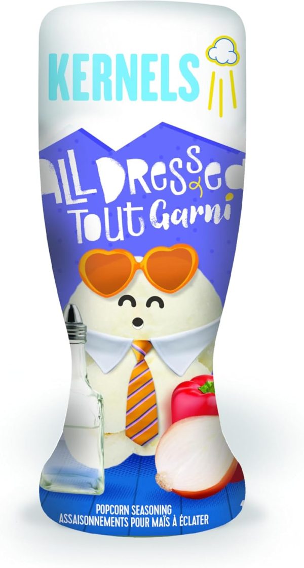 Kernels Popcorn Seasoning All Dressed 110 grams, combines the perfect blend of tangy, savory, and smoky flavors for a bold and unique taste. Designed to coat popcorn evenly, this seasoning brings together hints of barbecue, salt and vinegar, and a touch of sweetness for a truly irresistible snack. Packaged in a convenient bottle, it stays fresh and ready to add a flavorful kick to your favorite treats.