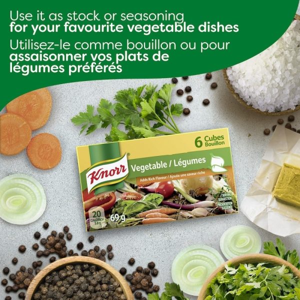 - Knorr Vegetable Bouillon Cubes (69 g) is a delicious blend of hearty vegetables, onion, parsley and spices