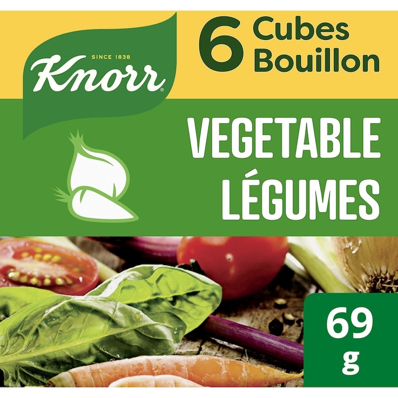 - Knorr Vegetable Bouillon Cubes (69 g) is a delicious blend of hearty vegetables, onion, parsley and spices