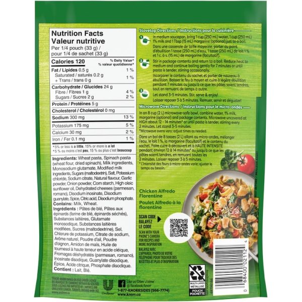 - Knorr Sidekicks Fettuccine Alfredo Pasta Side contains no artificial flavours or colours