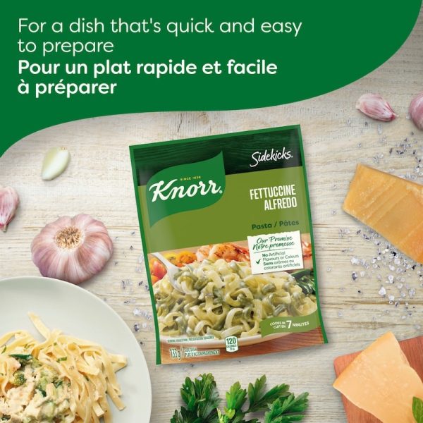 - Knorr Sidekicks Fettuccine Alfredo can be enjoyed as an easy-to-prepare quick meal that cooks in 7 minutes