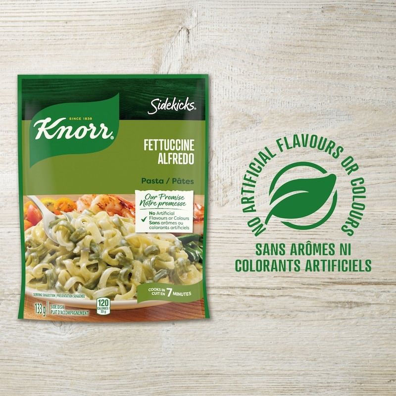 - Knorr Sidekicks Fettuccine Alfredo Pasta Side contains no artificial flavours or colours