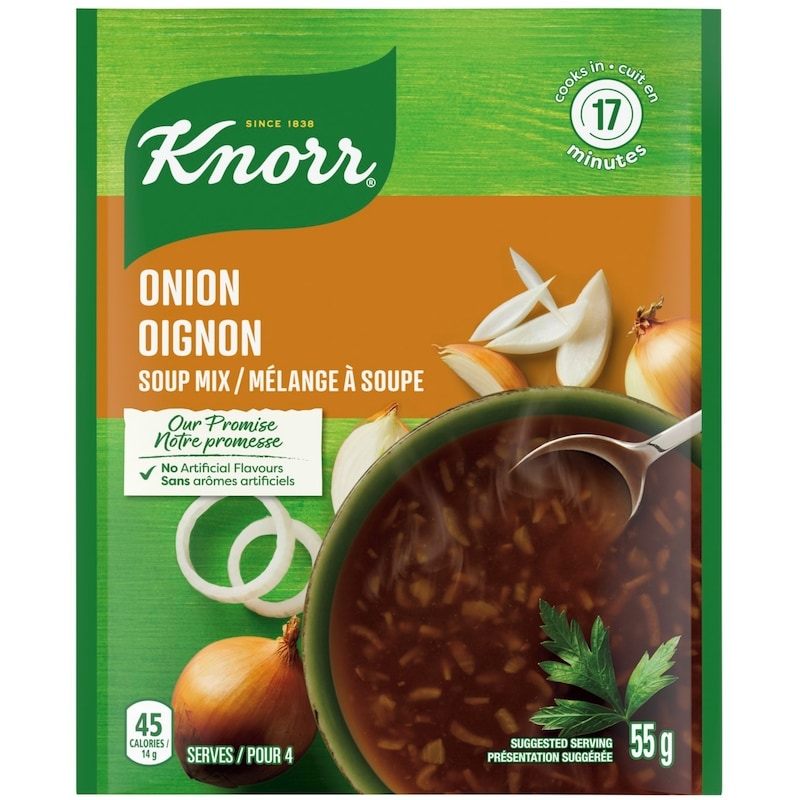 - Knorr Onion Soup Mix (55 g) is great served as a delicious soup in a cup or in our crowd-pleasing slow cooker Irish beef stew