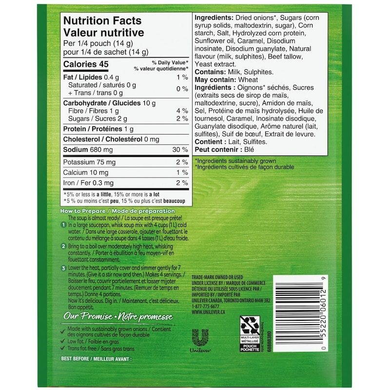 - Knorr Onion Soup Mix is made with sustainably grown onions