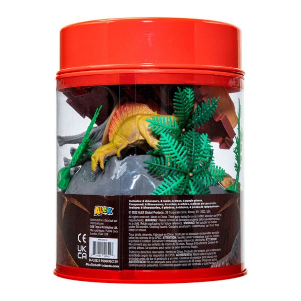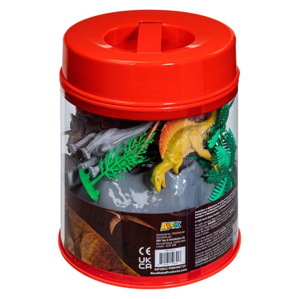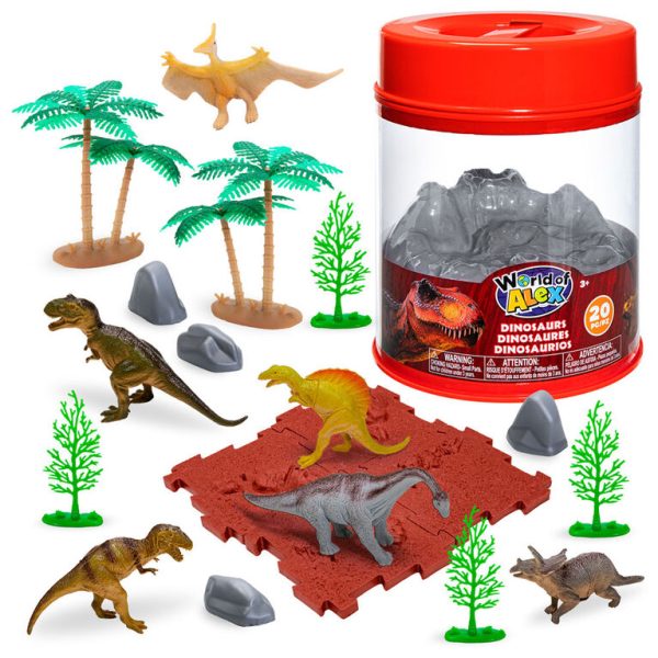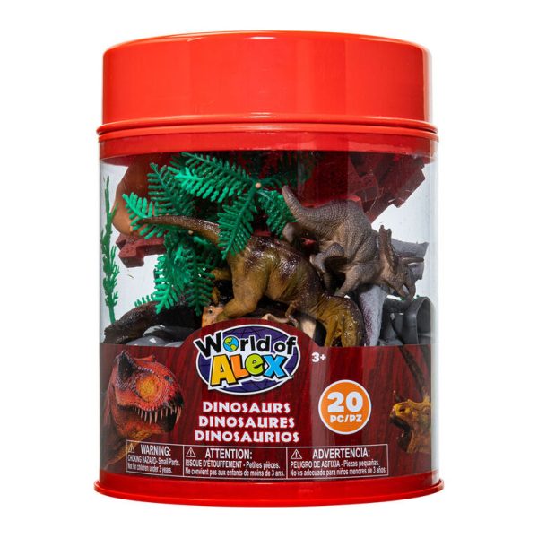 Unique, only available at our store. Travel back to the era of the dinosaurs with this 20 Piece Dino Bucket from World of Alex. An assortment of the most popular dinosaurs and accessories to let your child imagine life a billion years ago.
